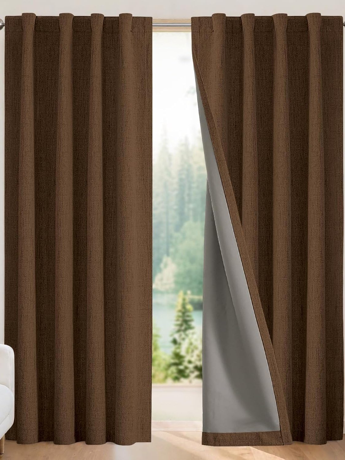 Joydeco Blackout Curtains for edroom – 84 Inch Long 100% Light Blocking 2 Panels Cappuccino Drapes, Thermal Insulated Room Darkening Curtains, Linen Textured for Living Room, Rod Pocket & Back Tabs, $39.99