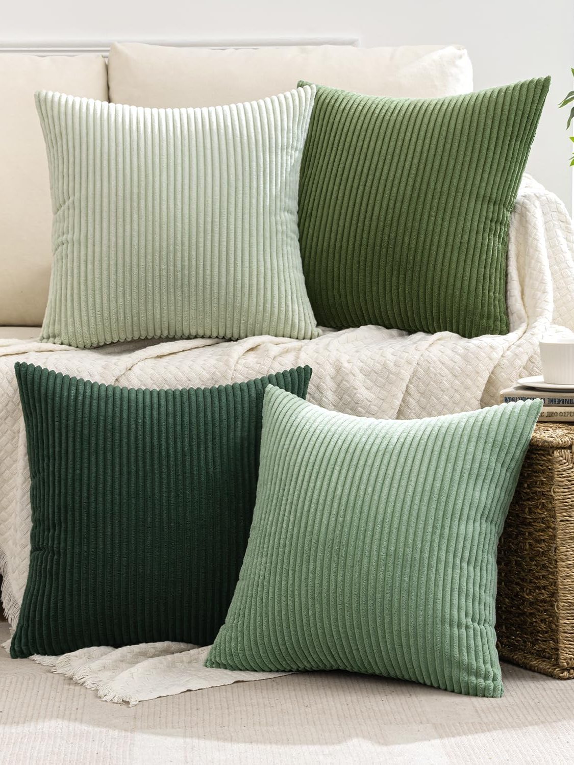 MIULEE Boho Farmhouse Sage Green Throw Pillow Covers 18×18 Inch Set of 4 Mordern Nordic Cushion Covers Soft Corduroy Christmas Home Decor for Couch Bed Sofa Living Room Forest Green, $19.99 with $3 off