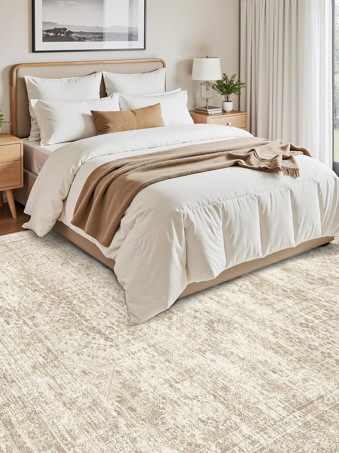 Washable Area Rug 8×10, Large Soft Rugs for Living Room Vintage Beige Carpet 8×10 Area Rugs for Bedroom Dining Room Non-Slip Stain Resistant Under Table Rug, $89.98