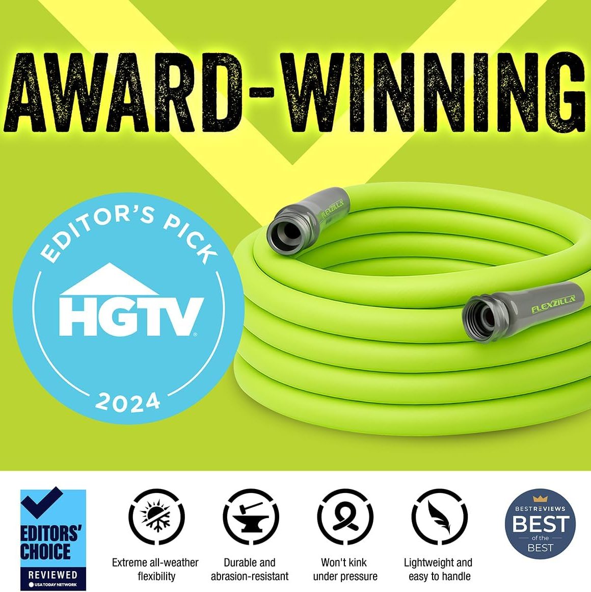 Flexzilla Garden Hose 5/8 in. x 50 ft., Lightweight All-Weather Water Hose, Durable and Flexible, Leak-Free Connections, $37.98